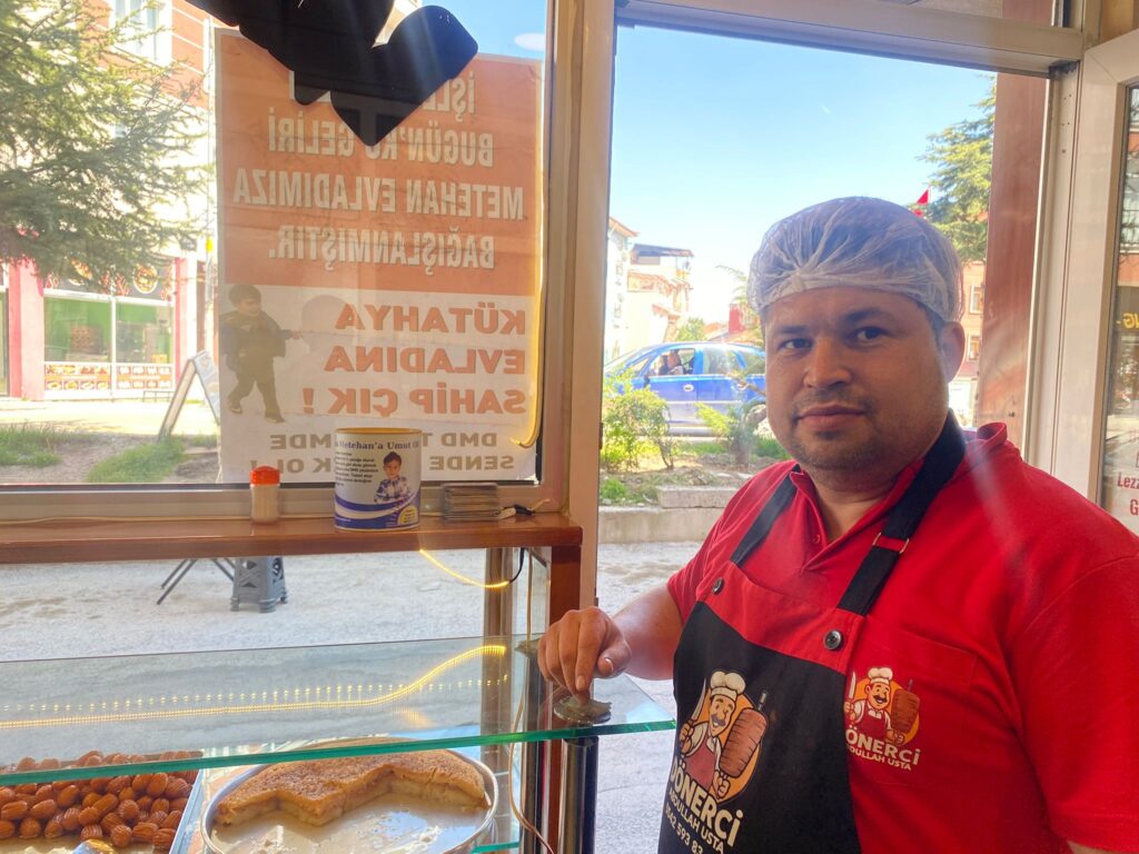 Meydan Mahallesi Osmanlı Caddesi’nde döner ve baklava işletmeciliği yapan 16 yıllık esnaf Abdullah Odabaş, memleketi Afyonkarahisar’da benzer sağlık sorunları yaşayan çocuklar için yürütülen çalışmalardan etkilenerek harekete geçti. Kütahya’da yaşayan ve genetik bir kas hastalığı olan DMD (Duchenne Musküler Distrofi) ile savaşan 4 yaşındaki Metehan Selvi’nin durumunu öğrenen Odabaş, minik yavruya nefes olmak için iş yerinin kapılarını iyilik için açtı.