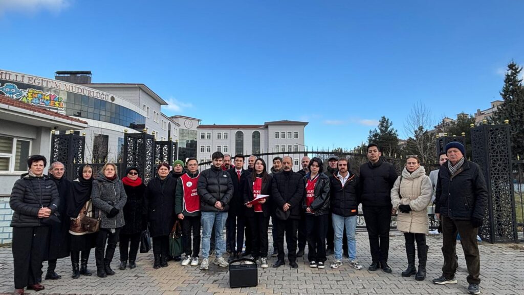 Kütahya İl Milli Eğitim Müdürlüğü önünde bir araya gelen Halkçı Liseliler, karnelerden Atatürk, İstiklal Marşı ve Gençliğe Hitabe’nin kaldırılmasına sert tepki gösterdi