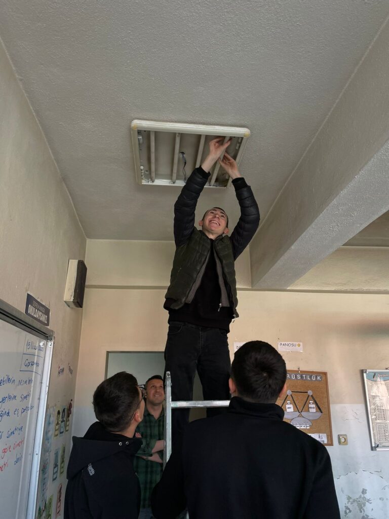 Okulun teknik ihtiyaçlarını titizlikle inceleyen genç ekip, kolları sıvayarak kısa sürede mucizeler yarattı. Yapılan çalışmalar kapsamında: Arızalı floresan lambalar tamir edilerek sınıflar yeniden ışıl ışıl hale getirildi. Kopan paratoner kabloları onarıldı; elektrik panosuna kapak ve topraklama yapılarak okul güvenli hale getirildi. Bilişim altyapısı baştan sona yenilendi. Bilgisayarlar formatlandı, internet bağlantısı kuruldu ve yazıcılar çalışır vaziyete getirildi.