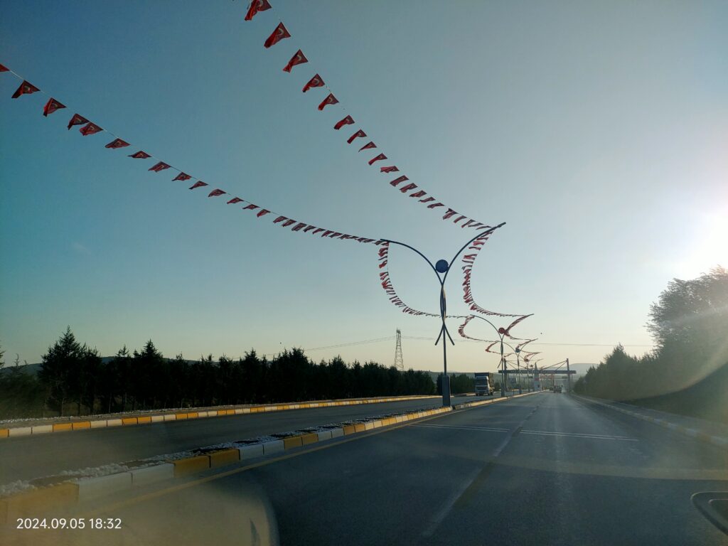 Kütahya 1. Organize Sanayi yolunda OSB Müdürlüğü tarafından asılan Türk Bayrakları yolu kullananlara adete şov yapıyor.