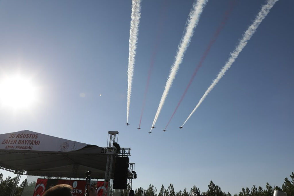 30 Ağustos Zafer Bayramı ve Büyük Zafer’in 103. yıl dönümü kapsamında düzenlenen anma programında, Türk Hava Kuvvetleri’nin akrobasi timi Türk Yıldızları nefes kesen bir gösteri sundu.