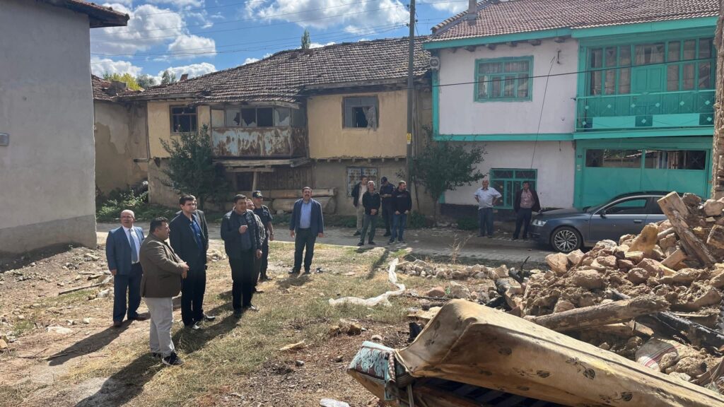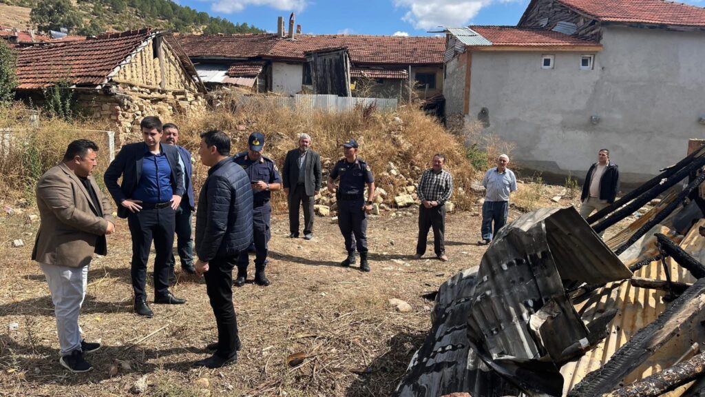 Altıntaş İlçe Kaymakam Vekili Alperen Teltik ve beraberindeki İlçe Özel İdare Müdürü Erdal Tosun ve MHP’li İl Genel Meclisi Üyesi Ömür Eldiven. Yeşilyurt Köyü’nü ziyaret ederek geçtiğimiz günlerde çıkan yangında hasar gören evde incelemeler yaptı.